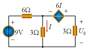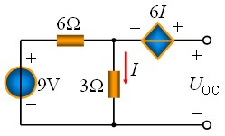 由電路聯接關系得到,Uoc=6I+3I,求解得到,I=9/9=1A,所以Uoc=9V