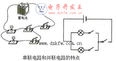 ⑴電路連接特點:串聯的整個電路是一個回路,各用電器依次相連,沒有“分支點”.