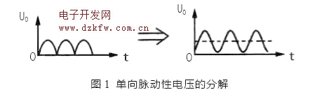 但根據波形分解原理可知,這一電壓可以分解一個直流電壓和一組頻率不同的交流電壓,如圖1(b)所示。在圖1(b)中,虛線部分是單向脈動性直流電壓Uo中的直流成分,實線部分是Uo中的交流成分。
