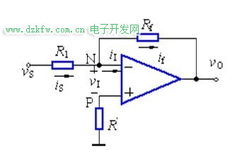 由于電路存在虛短,運放的凈輸入電壓vi=0,反相端為虛地。