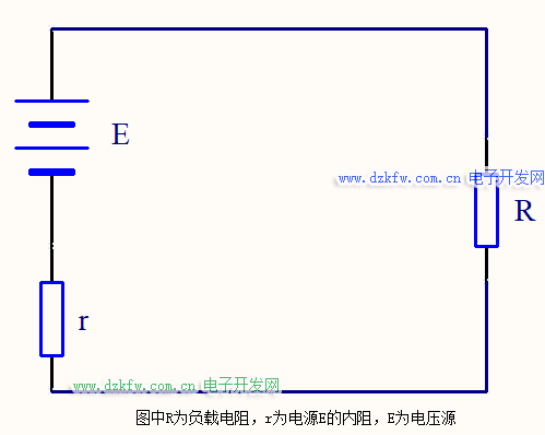 上圖中R為負載電阻,r為電源E的內阻,E為電壓源。由于r的存在,當R很大時,電路接近開路狀態;而當R很小時接近短路狀態。顯然負載在開路及短路狀態都不能獲得最大功率。