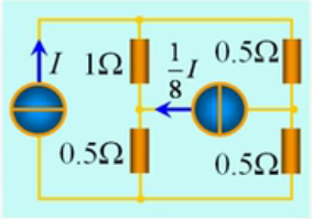 隨后的問題轉為求1/8I的電流源的兩端電壓(方向左﹢右-,其實就是個電阻),利用疊加定理可以解決。