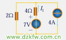 簡單的疊加定理可以求得I1=4*1/3+7/6=2.5A