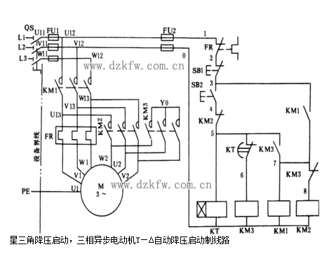 三相異步電動機Y—Δ轉換啟動的控制原理大致如下: