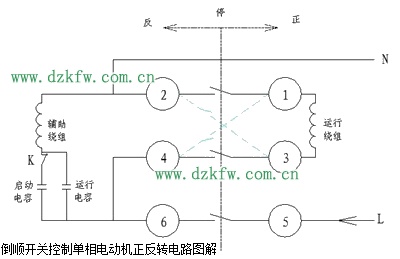 反轉(zhuǎn)時(shí)電流方向:L>>>5>>>6>>>4>>>1>>>運(yùn)行繞組>>>3>>>2>>>N