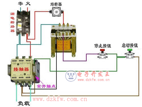 一:急停按鈕開關(guān)與熔斷器,線圈,漏電斷路器,接觸器進(jìn)行電路操作時(shí)的接線圖