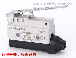 行程開關又稱為限位開關、位置開關,它的作用與按鈕開關相同,只是對控制電路發(fā)出接通或斷開、信號轉換等指令的電器。區(qū)別只是其觸頭的動作不是靠手指來完成,而是利用生產(chǎn)機械某些運動部件的碰撞使其觸頭動作,接通或斷開某些控制電路,達到一定控制要求的電器。為適應各種條件下的碰撞,行程開關有很多構造形式,用它來限制機械運動的位置或行程,以及使運動機械按一定行程自動停車、反轉或變速循環(huán)等以實現(xiàn)自動控制。