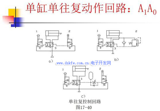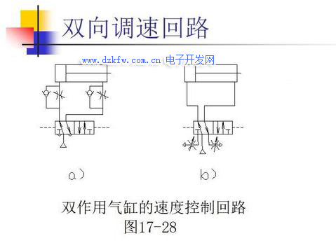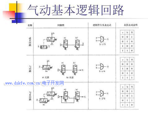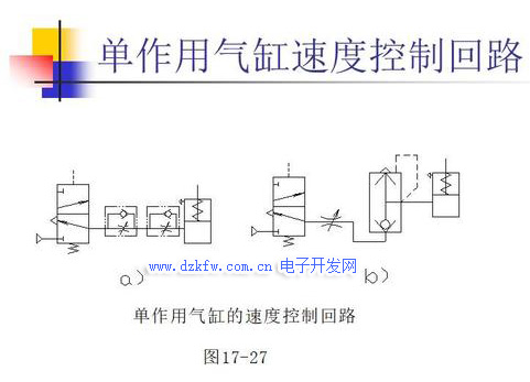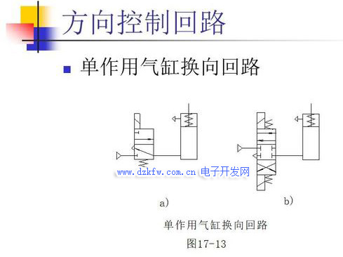 氣動基本回路:方向控制回路,壓力控制回路和速度(流量)控制回路。