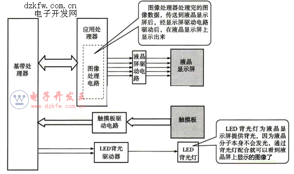 智能手機的液晶顯示屏采用的是液晶分子為原料制造的液晶屏,液晶是液態光電顯示材料,當通電時導通,排列變得有秩序,使光線容易通過;不通電時排列混亂,阻止光線通過,從而讓液晶如閘門般地阻隔或讓光線穿透。入們利用液晶的電光效應把電信號轉換成字符、圖像等可見信號來顯示圖像。