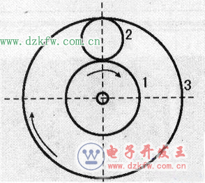 行星齒輪是機械齒輪傳動系統中典型的周轉輪系,其內部齒輪位置如下圖所示,齒輪1和齒輪3均稱為中心輪(又稱太陽輪),其中齒輪1就是傳動軸,齒輪3是齒圈,它和離合軸剎車盤脫水軸周向固定連接。