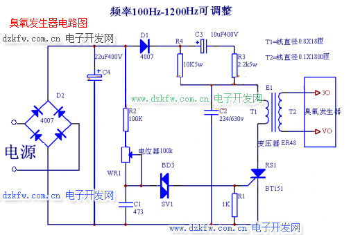 臭氧的產量、濃度隨所加的電源電壓,電流等變化。