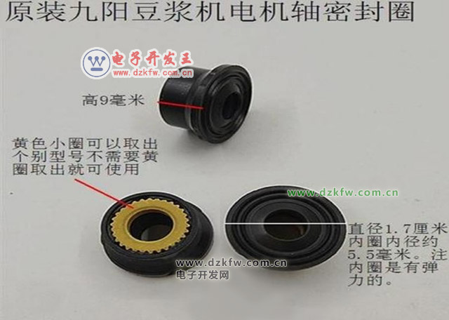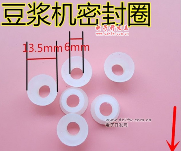 其中豆漿機的密封圈,是設置在豆漿機的機頭下蓋和電機軸之間,所述密封圈與機頭下蓋接觸的端面上凸設有用以支撐機頭下蓋的支撐體。密封圈上需要用到防水油,油脂要求比較嚴格,需要符合食品級,而且受高低溫影響變化不能過大。