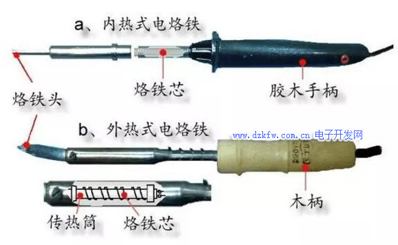 電烙鐵是電子制作和電器維修的必備工具,主要用途是焊接元件及導(dǎo)線,按機(jī)械結(jié)構(gòu)可分為內(nèi)熱式電烙鐵和外熱式電烙鐵,按功能可分為無吸錫電烙鐵和吸錫式電烙鐵,根據(jù)用途不同又分為大功率電烙鐵和小功率電烙鐵。