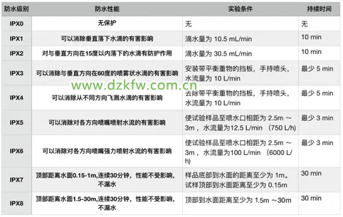 這里可以注意一下防水等級,可以參考下面的防水等級測試圖