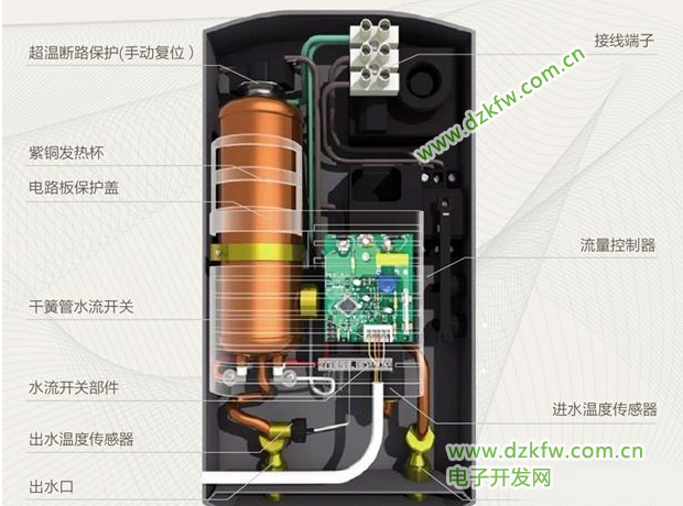 即熱式電熱水器不加熱分為兩種情況:一是電熱水器加熱燈亮,但不加熱;另一種則是電熱水器加熱燈不亮,也不加熱,應檢查以下幾個部位: