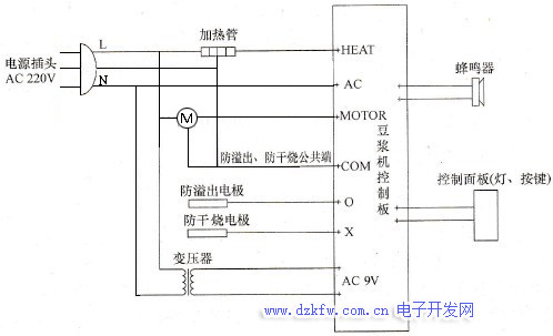豆漿機由粉碎黃豆的攪拌機、豆漿加熱器和控制電路三大部分組成。用單片機研制的全自動豆漿機的控制電路,只要按下啟動按鍵,豆漿機就開始工作。整個過程由單片機全自動控制,比較安全方便。