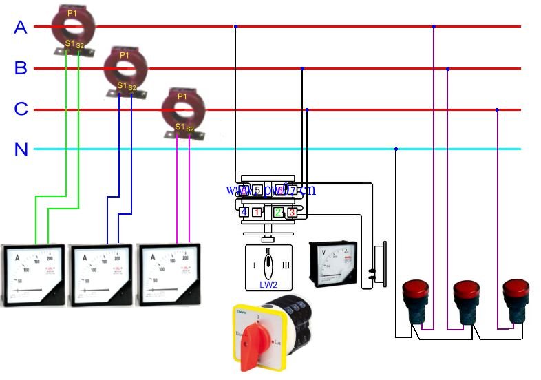 相關產品說明:電流互感器3臺,電流表三只,指示燈三只,電壓表一只,LW2萬能轉換開關一個。