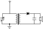 上圖是晶體二極管的檢波電路,是利用晶體二極管的單向?qū)щ娦詠磉M(jìn)行檢波的。調(diào)諧電路中產(chǎn)生的是經(jīng)過調(diào)幅的高頻振蕩電流,L1和L2繞在同一磁棒上,由于互感作用,在L2上產(chǎn)生的是高頻交變電壓.由于二極管的單向?qū)щ娦裕ㄟ^它的是單向脈動(dòng)電流,這個(gè)單向脈動(dòng)電流既有高頻成分,又有低頻的聲音信號(hào),高頻成分基本從電容器C(復(fù)習(xí)旁路電容器)通過,剩下的音頻電流通過耳機(jī)發(fā)聲。(用示波器觀察檢波過程)實(shí)際上就是一個(gè)晶體二極管收音機(jī)的電路圖.這種收音機(jī)聲音很小,只能用開機(jī)收聽本地電臺(tái).為了提高收音機(jī)的接收性能,需要用放大器把微弱的信號(hào)放大.下圖示是加有放大器的收音機(jī)方框圖.由天線和調(diào)諧電路接收到的高頻調(diào)幅電流,先通過放大器進(jìn)行高頻放大,然后進(jìn)行檢波和低頻放大,放大后的音頻電流輸送到喇叭,使它們發(fā)出聲音。