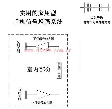 這種用法是可以讓您在屋里一定的范圍內使用手機,方便了許多,但是也得付出一些銀子,得幾十元錢的投入。安裝使用示意圖如下:
