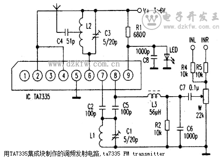 用TA7335集成塊制作的調頻發射電路,ta7335 FM transmitter
