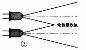 安裝時調節發射部分三極管VT1的靜態電流在30mA左右。接收部分只要安裝無誤,不需調試即可工作。發射部分可以安裝在電視機內部,由機內12V電源供電。信號輸入端接到音量電位器兩端即可。對于伴音功放采用直流音量控制的電視機,可以在C1前面串聯一個5.1kΩ的電阻后將輸入端接到揚聲器的兩端。調節音量電位器,使其轉發距離最遠(3~4m)且不失真即可。兩只紅外線發射管(VD1。VD2)在安裝時,要考慮其輻射區范圍,由于紅外發射管的輻射角一般在60°左右,所以安裝時要使它們的輻射空間范圍有一部分重疊,如圖3所示。