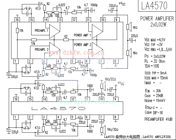 LA4570音頻放大電路圖,LA4570 AMPLIFIER