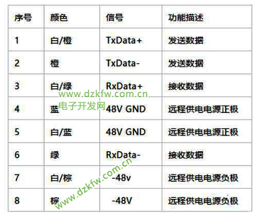 2.利用信號線(1、2、3、6)同時傳遞信號和48v電源