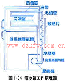 2)吸收式電冰箱:該種電冰箱可以利用熱源(如煤氣、煤油、電等)作為動(dòng)力。利用氨-水-氫混合溶液在連續(xù)吸收-擴(kuò)散過程中達(dá)到制冷的目的。溫度控制系統(tǒng)缺點(diǎn)是效率低,降溫慢,現(xiàn)已逐漸被淘汰。